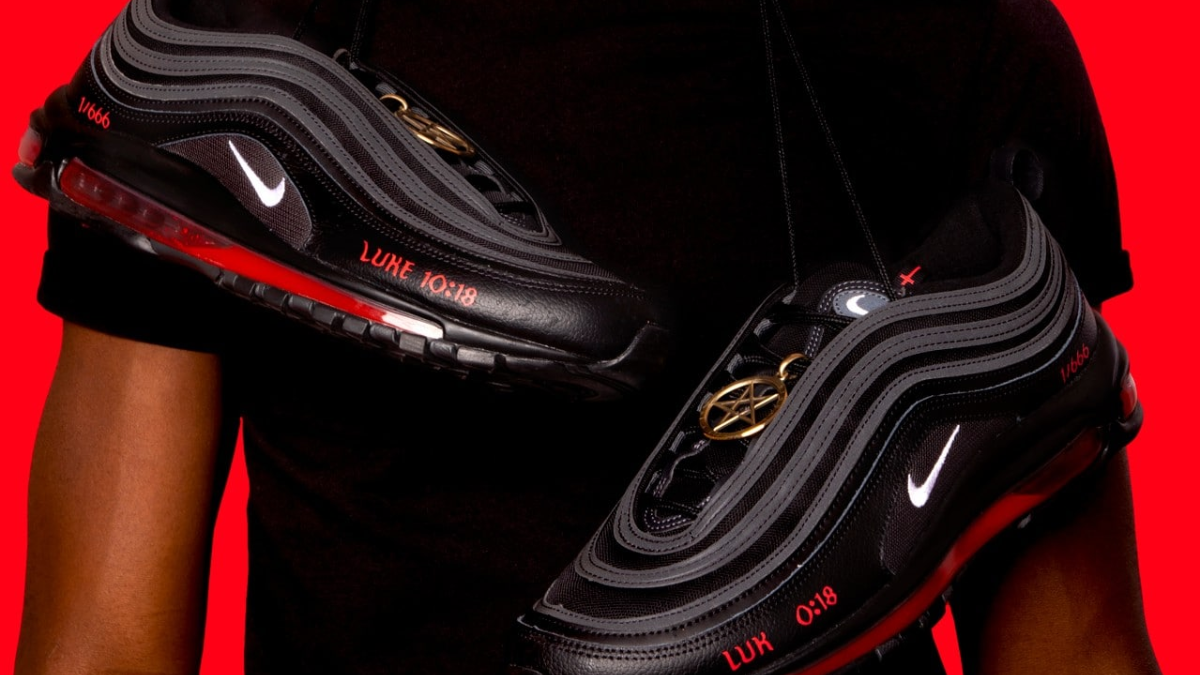 Dựa trên một đôi Air Max 97 của Nike, “Satan Shoes” – hợp tác giữa MSCHF và Lil Nas X gần giống như ác quỷ mà một đôi giày thể thao có thể có được. Ngoài phần upper toàn màu đen, bạn sẽ tìm thấy một bộ phận Air chứa đầy 60cc mực và một giọt máu người thật – vâng, bạn đã đọc đúng. Chủ đề đen tối không dừng lại ở đó, vì những đôi này giới hạn ở 666 đôi giày thể thao (rất thích hợp) được đánh số riêng bằng màu đỏ trên quầy phía sau bên, trong khi “Lu-ca 10:18” trang trí phần tư phía trước cũng bằng màu đỏ satan nét chữ. Lưu ý: 10:18 là đoạn mà Lu-ca nói, “Tôi đã thấy Sa-tan từ trời sa xuống như chớp.”