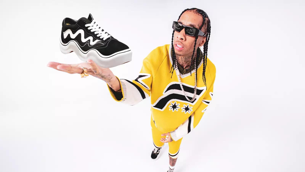 Tyga đã hợp tác với MSCHF để thêm một bước ngoặt mới cho giày trượt băng cổ điển. Được mệnh danh là “Wavy Baby”, giày thể thao ba bánh được trang trí bằng các chi tiết thiết kế ba hoa khiến người xem phải đảo mắt. Hình bóng phiên bản giới hạn thể hiện thiết kế giày trượt băng truyền thống với cấu trúc màu đen và trắng, bên cạnh các chi tiết ốp vải và da lộn đặc trưng. Đúng như tên gọi, các chi tiết thiết kế lượn sóng hiện diện trên phần đế dày màu trắng, các chi tiết đường kẻ trên thân giày và đường chỉ khâu màu trắng. Hoàn thiện phiên bản phối lại của hình bóng cổ điển là một mấu gót màu đỏ trên đế. Đây là thiết kế đã vô cùng thu hút các sneakerhead bởi những dấu ấn đặc trưng của Vans đều hiện hữu trên đôi giày này.