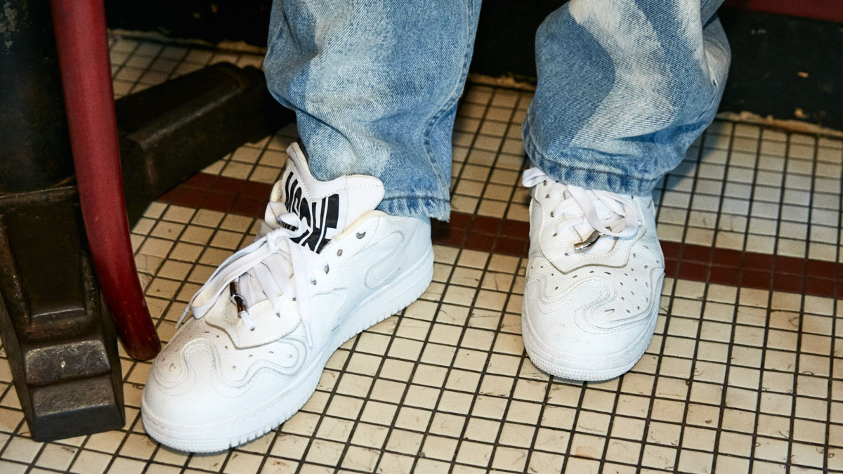 Thiết kế bất đối xứng được tìm thấy trên mũ giày bằng da màu trắng với nhãn hiệu MSCHF trên tab lưỡi gà và “!!!” thêu trên gót chân. Các đơn vị duy nhất bên dưới có cấu trúc tương tự như AF1 ngoài nhãn hiệu MSCHF và đáy gợn sóng. Nike được biết là rất bảo vệ các kiểu dáng giày dép đặc trưng của mình và đã có hành động pháp lý chống lại MSCHF trước khi phát hành sản phẩm này, có khả năng sẽ chú ý đến phần giới thiệu tinh nghịch mới của MSCHF.